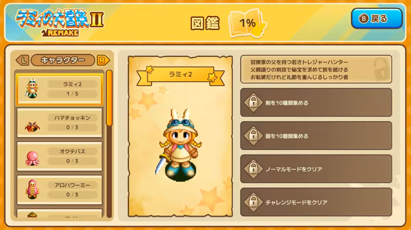オリジナルの「ラミィの大冒険」にはない「チャレンジモード」を追加!「カタッチャマ」等の新規モンスター、新規装備品も追加された高難易度の不思議のダンジョンに挑め!チャレンジモードをクリアすると、なんと「追加されたストーリー」も見られるよ!
